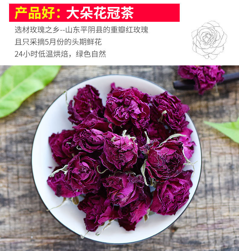 玫源 Новый чай роз Короны Большой съедобный пингин розовый сушеные цветы замочите воду здоровье 60 граммов ежегодной подарочной коробки грузовых автомобилей