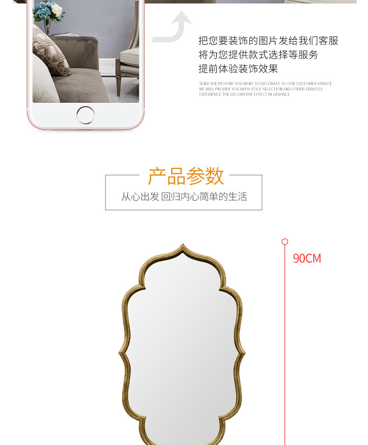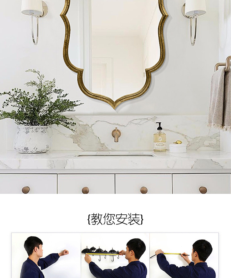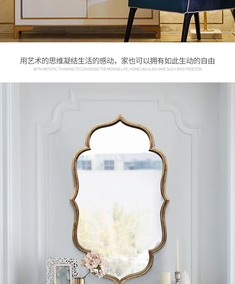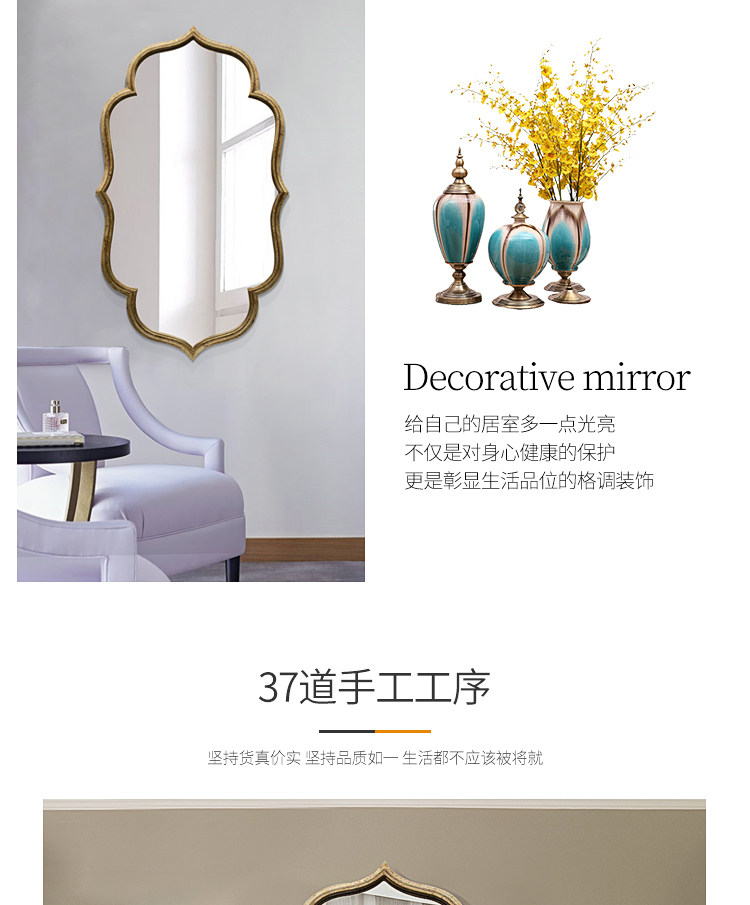 Европейское ретро -зеркало висеть на стене Американское зеркало для ванной комнаты в виде старого света роскошного зеркала для макияжа зеркало каминовое печи Управление декоративное зеркало