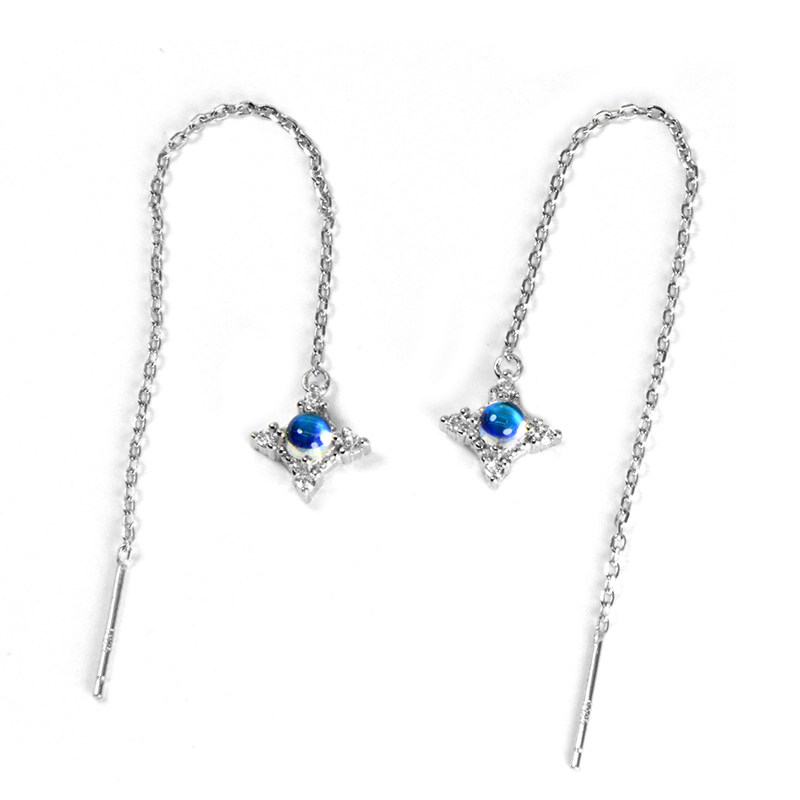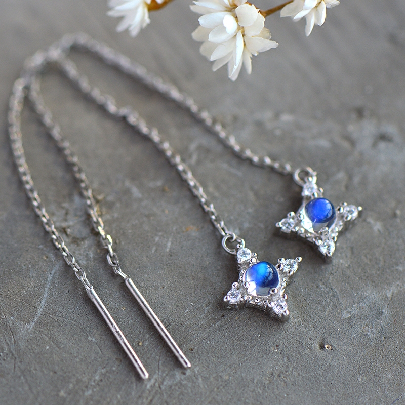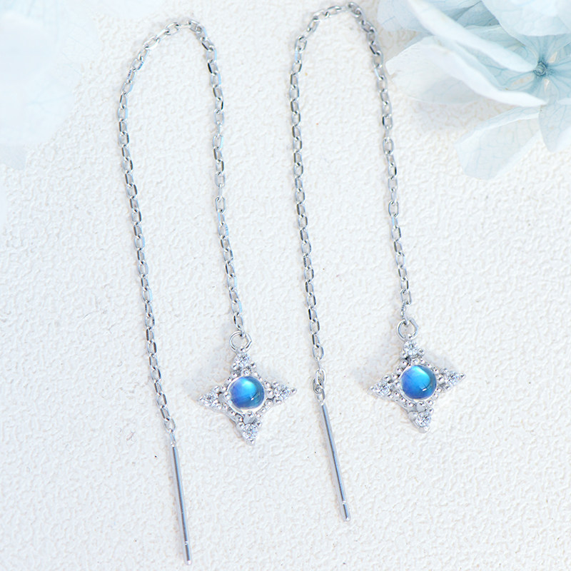 Натуральные длинные гипоаллергенные серьги для друга, лунный камень, серебро 925 пробы, простой и элегантный дизайн, японские и корейские, подарок для девушки