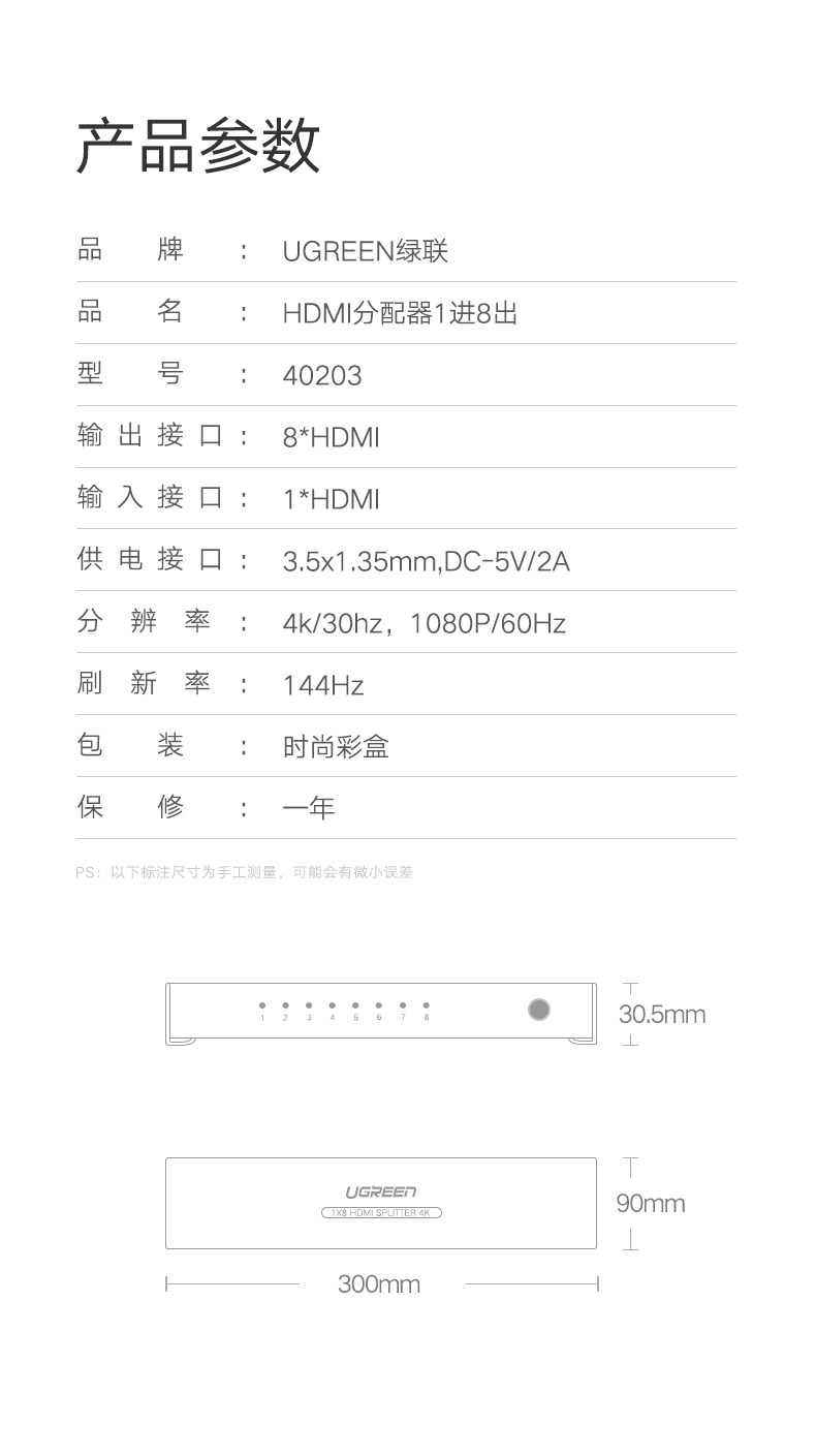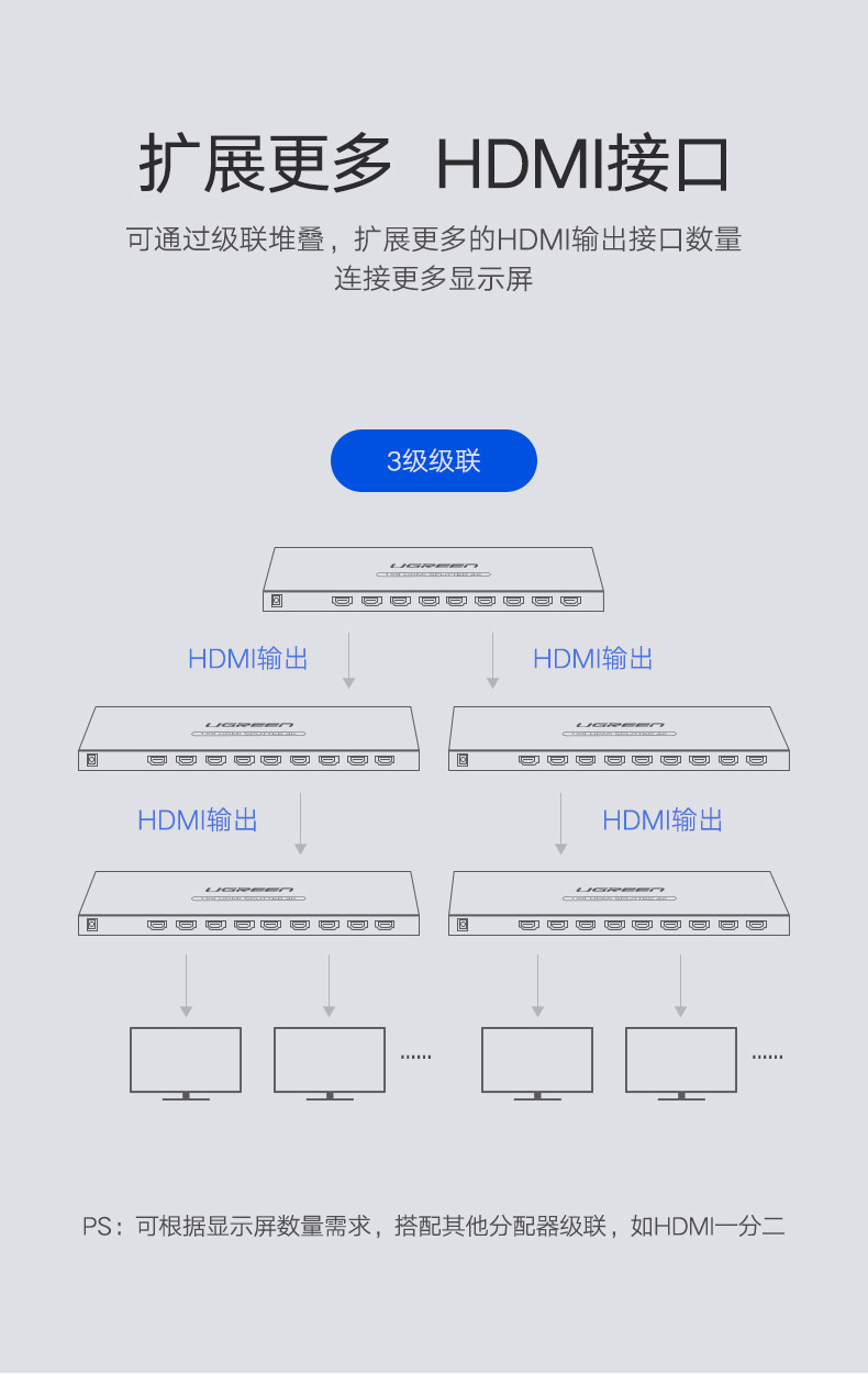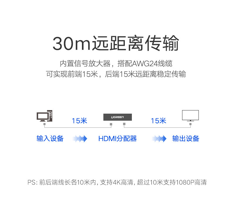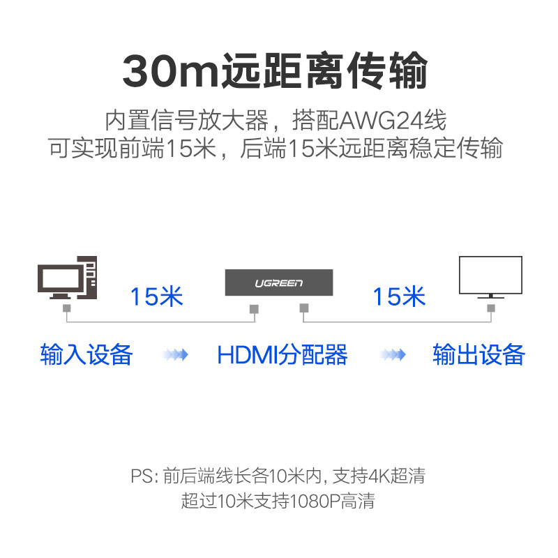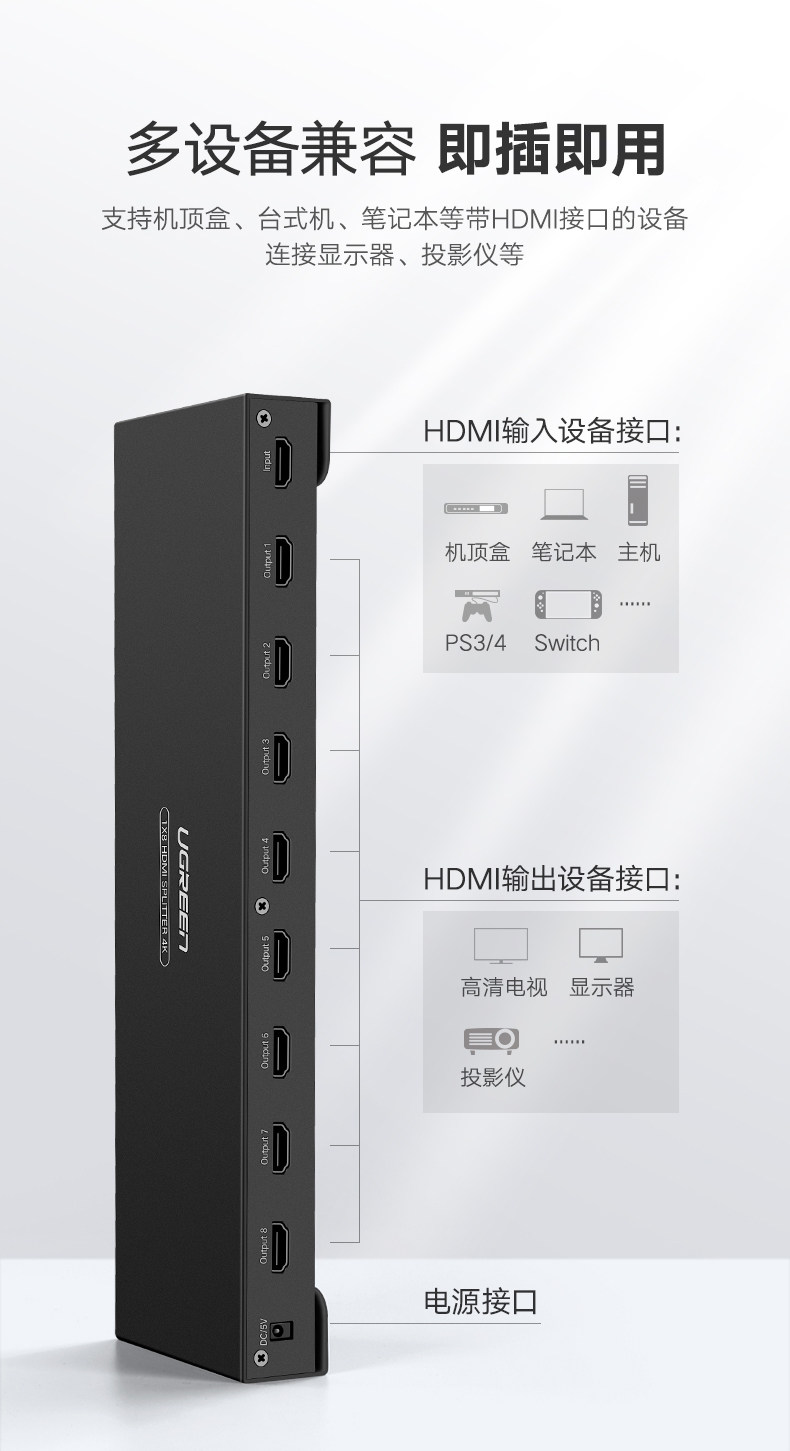 绿联 Устройство распределения HDMI PS4 Game PS4 Game Switch, применимый к Top Box Sound Video Compuret Host Book Notebook Desktop Proctor 1080 High -Definition 4K Divisioner