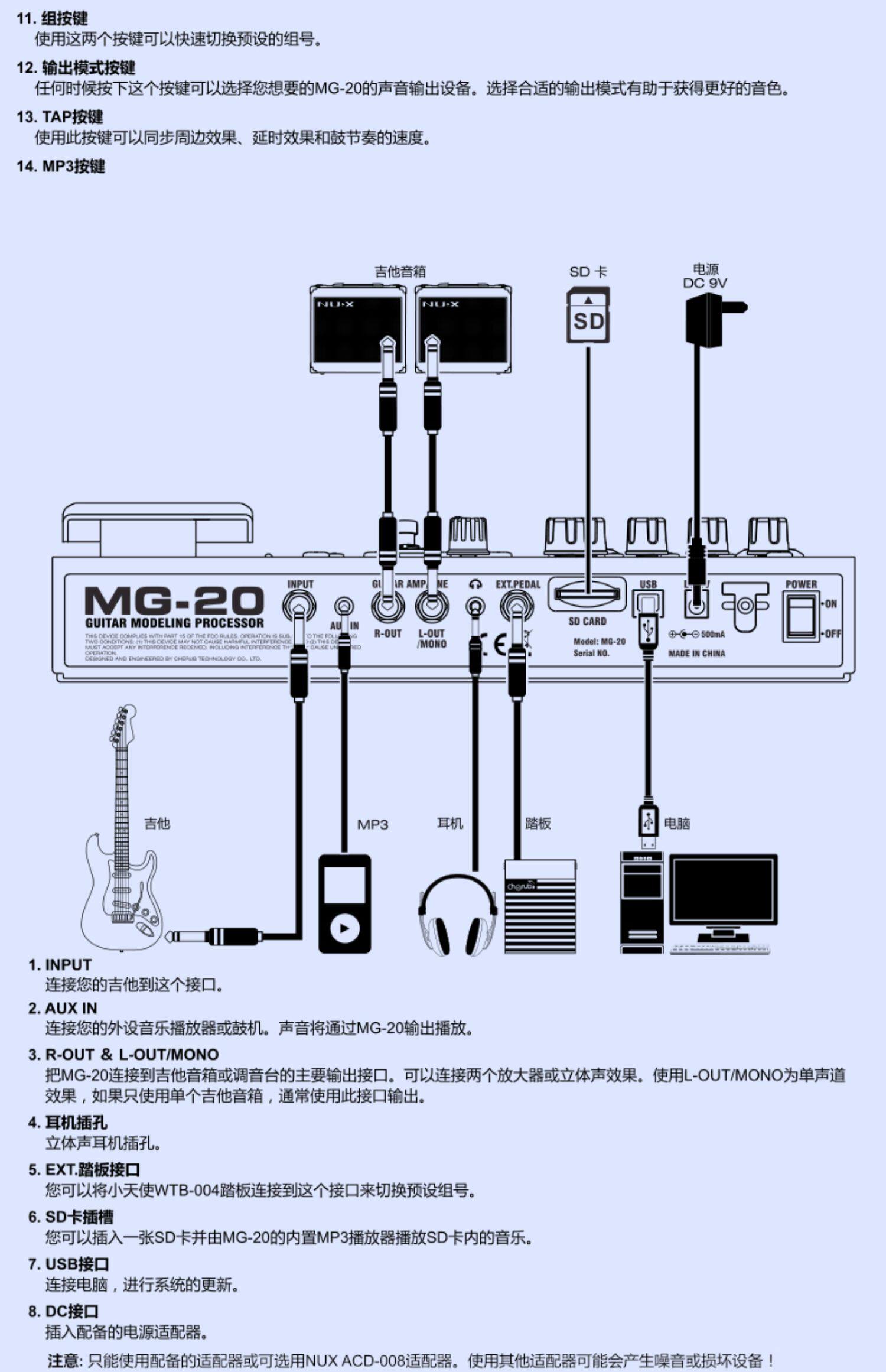 Эффект NUX Электроитара Цифровая комплексная синтетическая корпорация Эффект MG-20 MFX-10 MG-100