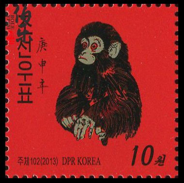 Северокорейская версия китайского Zodiac Zodiac T46 Monkey Ticket Single Stamp уходит четыре комплекта в Fanglian