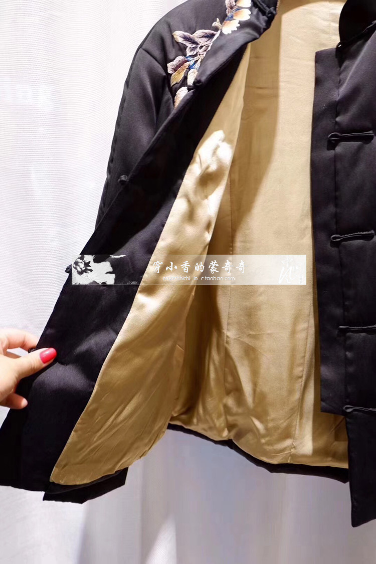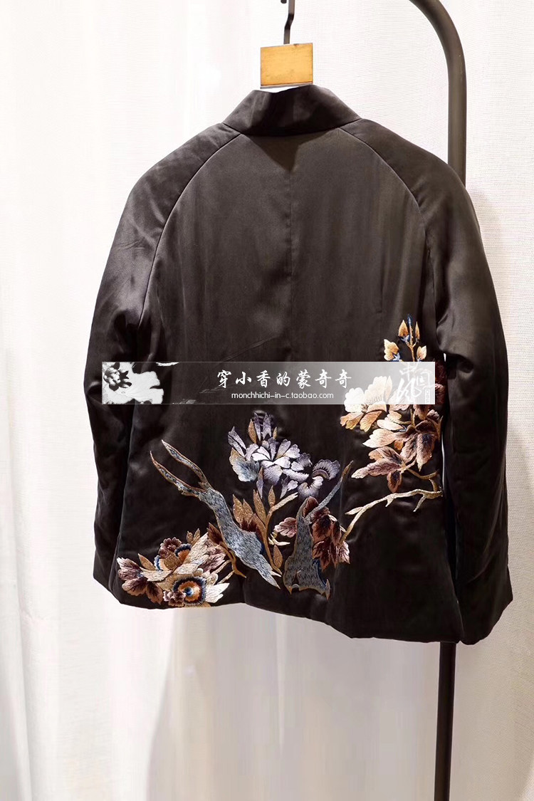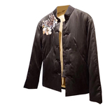 Шелковый демисезонный пуховик, хлопковая ретро куртка, китайский стиль, с вышивкой