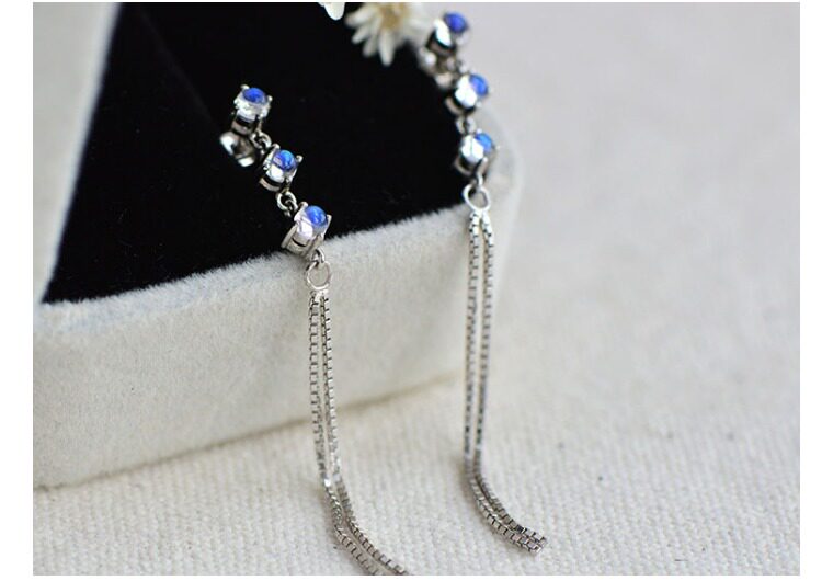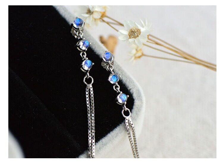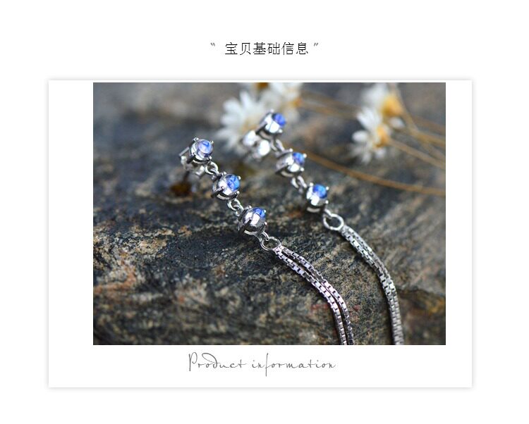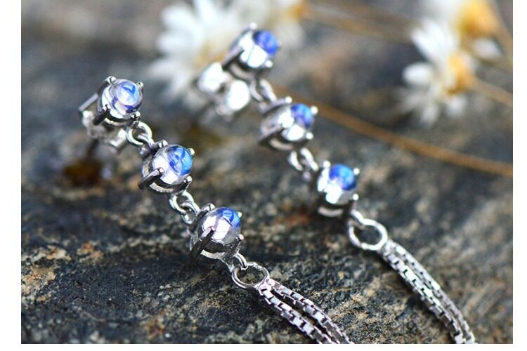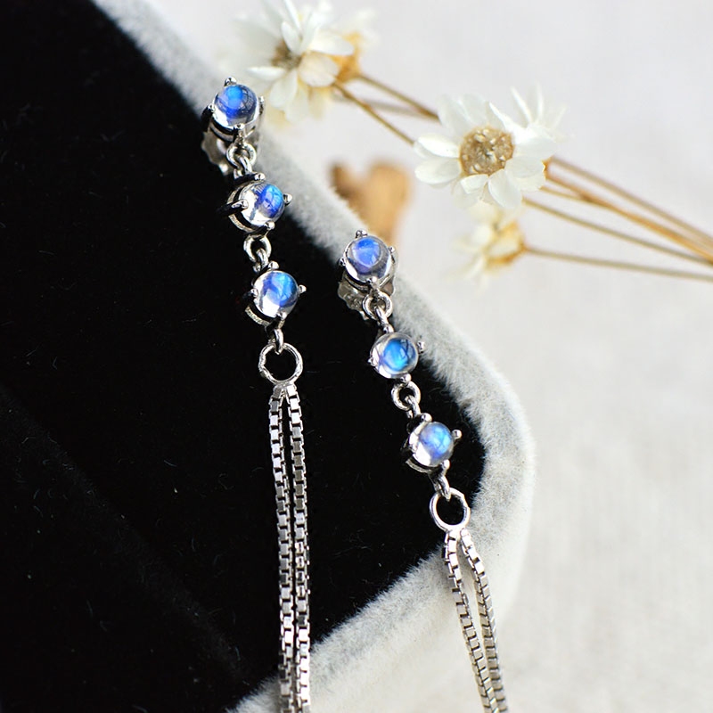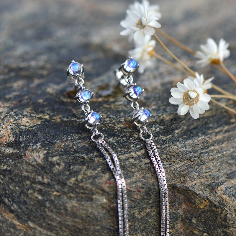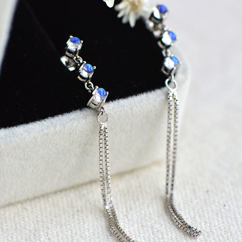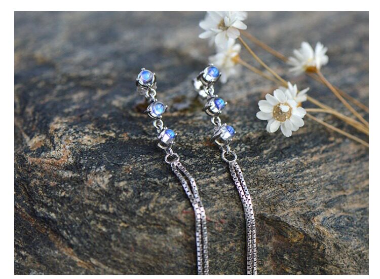 Натуральные длинные ретро гипоаллергенные серьги, лунный камень, серебро 925 пробы, простой и элегантный дизайн
