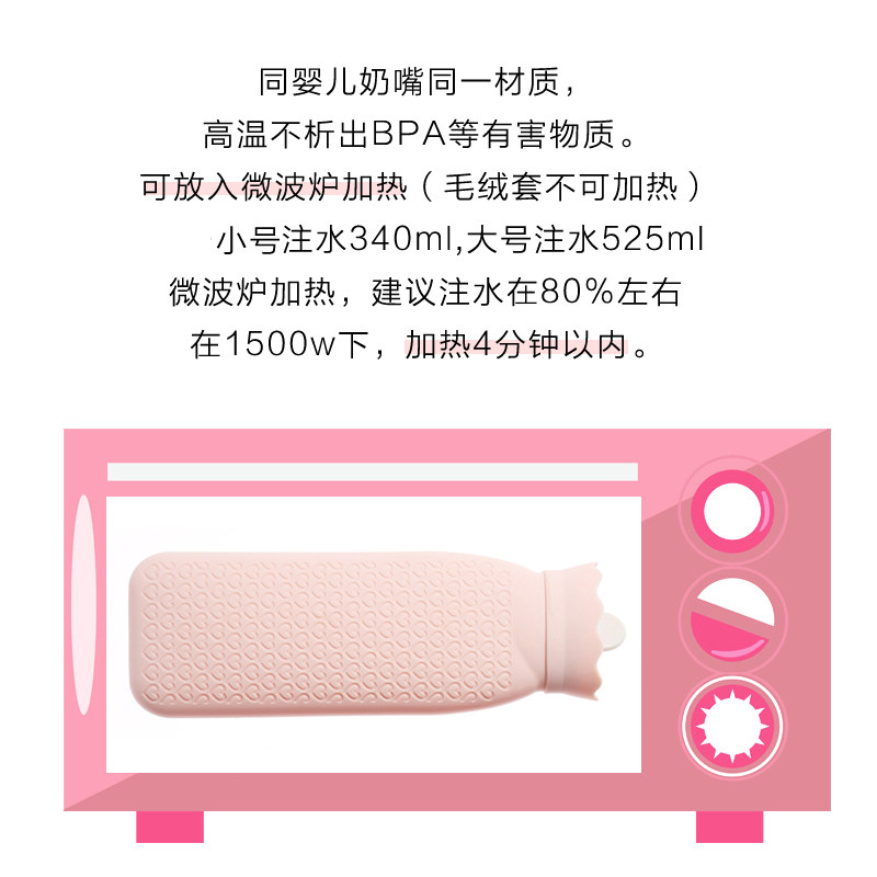 Взрывобезопасная силиконовая емкость для воды, плюшевая портативная большая грелка для рук
