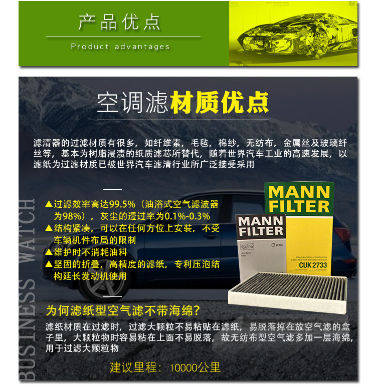 Фильтрующий элемент салонного фильтра MANN CUK2733 подходит для Aurora Freelander 2S60S80XC60
