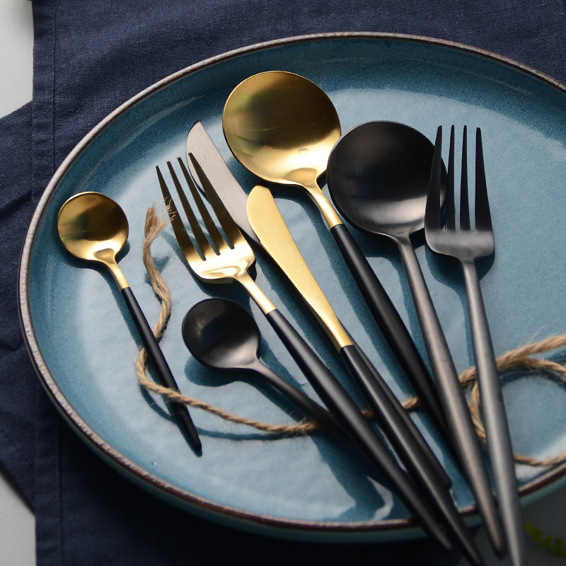 Nordic Style INS из нержавеющей стали западной обеденной ложки, португальская черная золотая ложка кофейная ложка сплошное цвето
