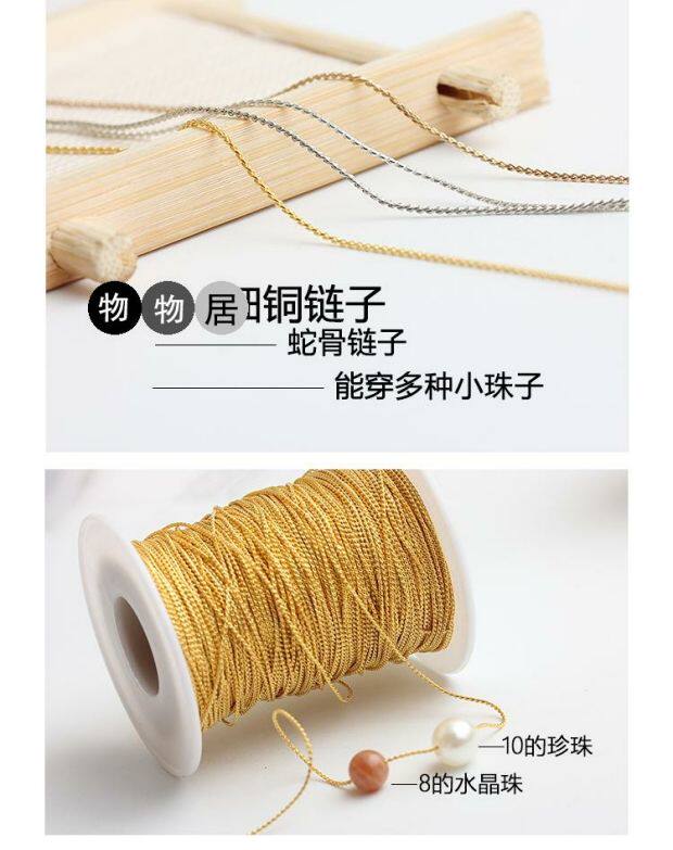 Медная цепь из жемчуга, ожерелье из нефрита, цепочка до ключиц ручной работы, золото и серебро, DIY