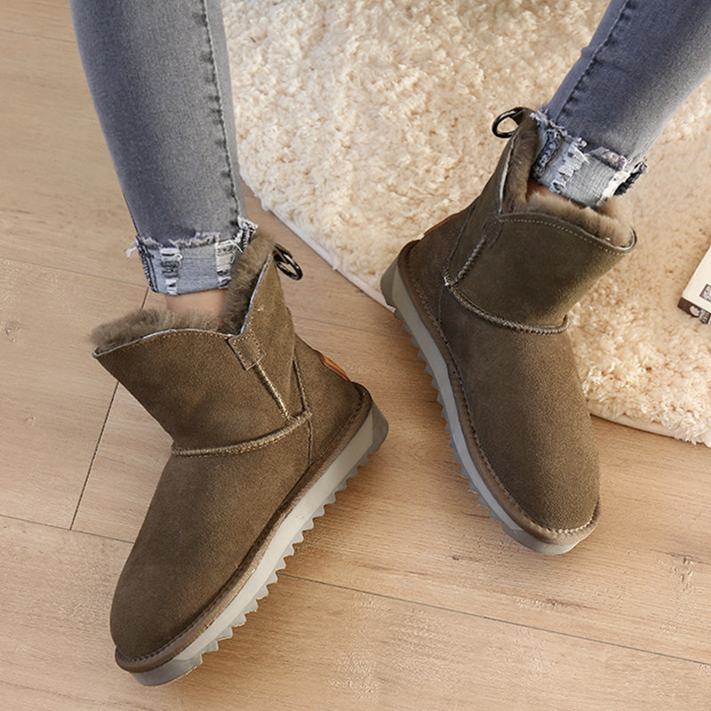 Утепленные зимние кожаные короткие сапоги, удерживающие тепло нескользящие ботинки