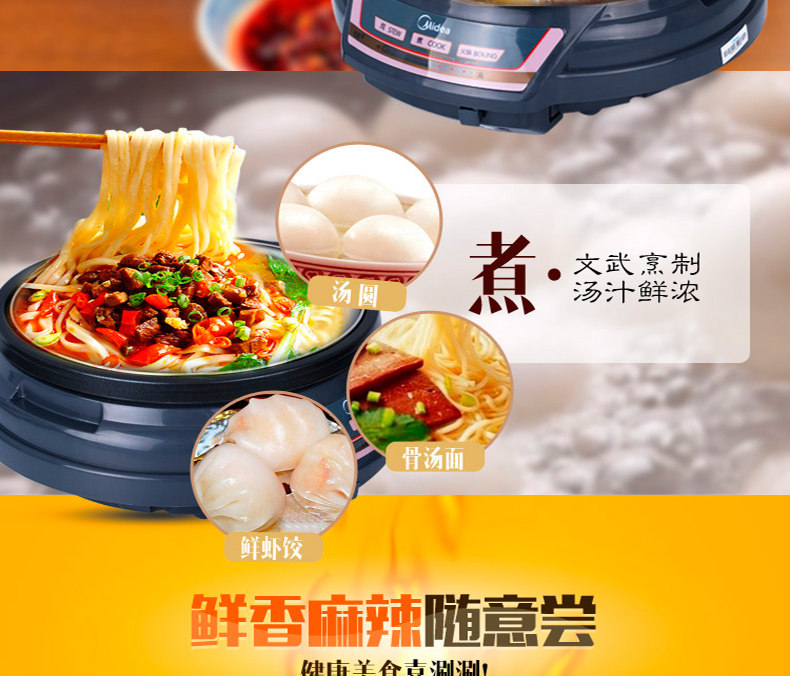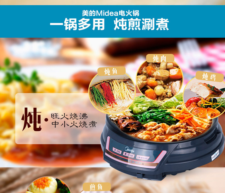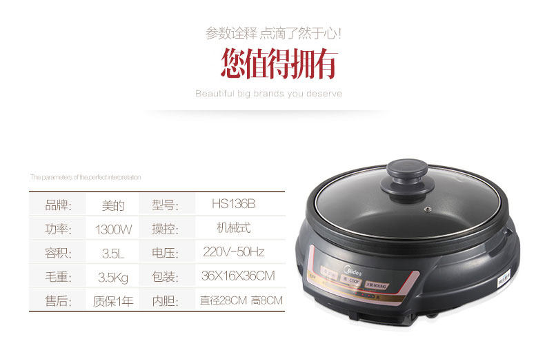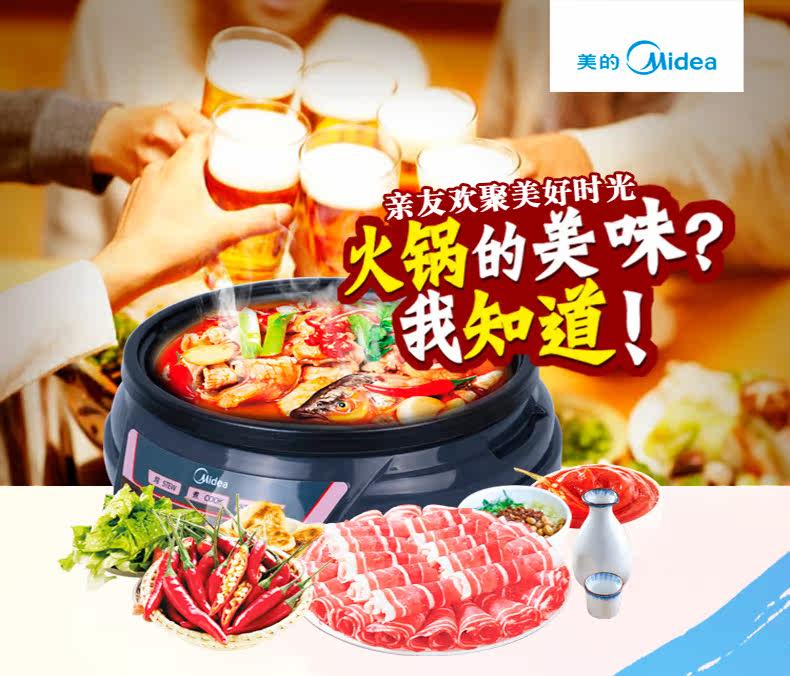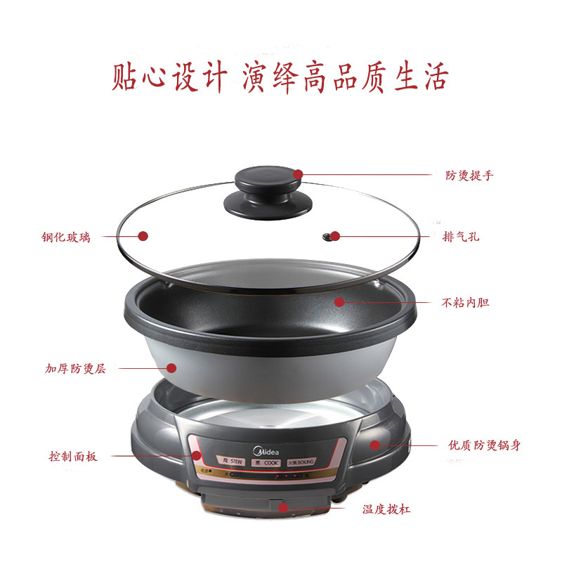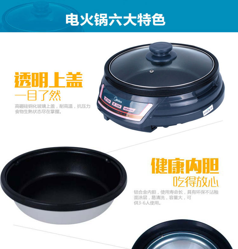 Midea/美的 HS136B Electric Hot Pot Homeving Multifunction Electric Hot Pot Corean Hot Pot Electric Wok 2-4 человека