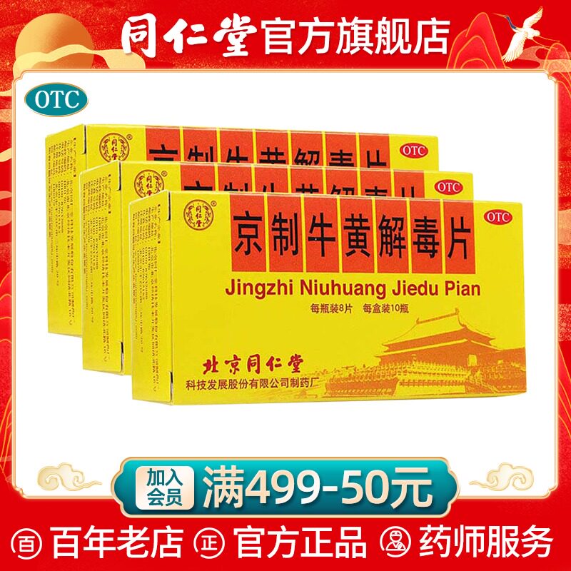 Пекин Тонгрентанг Пекин -Случай -говяжье желтый детоксикация Таблетки 10 бутылок тепла, детоксикации горла в горле, зубные боли, обезболивающие, обезболивающие