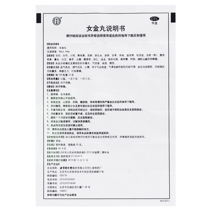 Пекин Тонгрентанг Нудзин таблетки 30G Ци способствует кровообращению, а облегчение боли используется для дефицита ци и крови и менструального