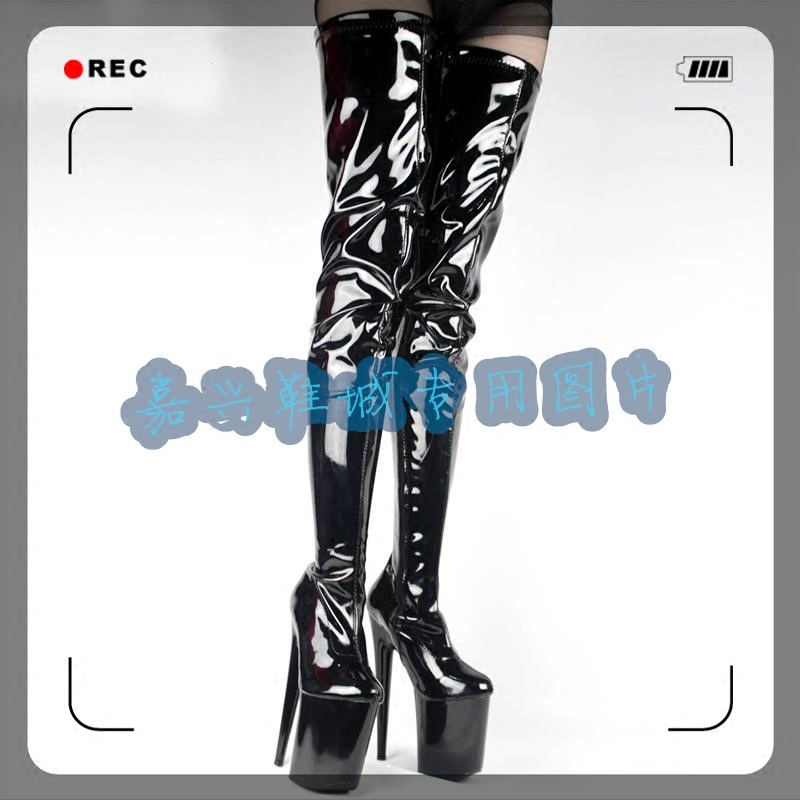 Сексуальная европейская и американская черная патентная кожа 20 см. Краска водонепроницаемой платформы над -нэ -бедрами y101