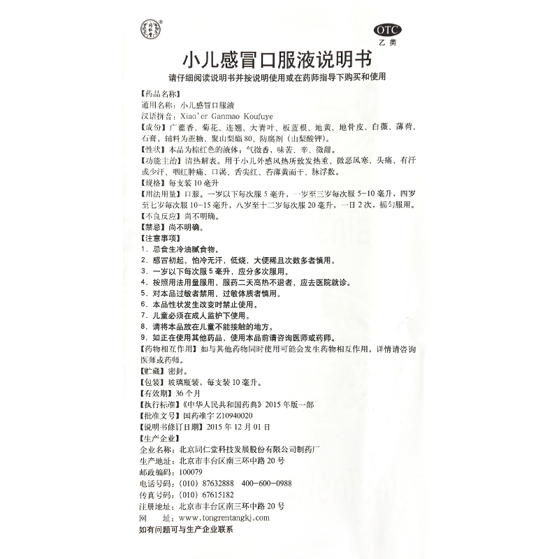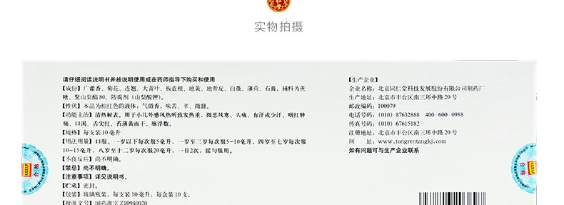 Пекин Тонгрентанг Официальный веб -сайт Детский холодный пероральный раствор 10/ящик ветровый жар, холод, жажда, жажда, горячая головная боль