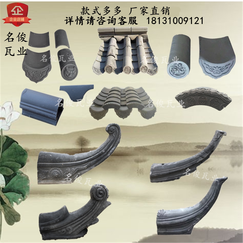 Античная синяя черепица, коньки и углы крыши, старинная зеленая черепица, карнизы, углы, синяя плитка, мозаика, плитка Huipai, настенная плитка, декоративная плитка