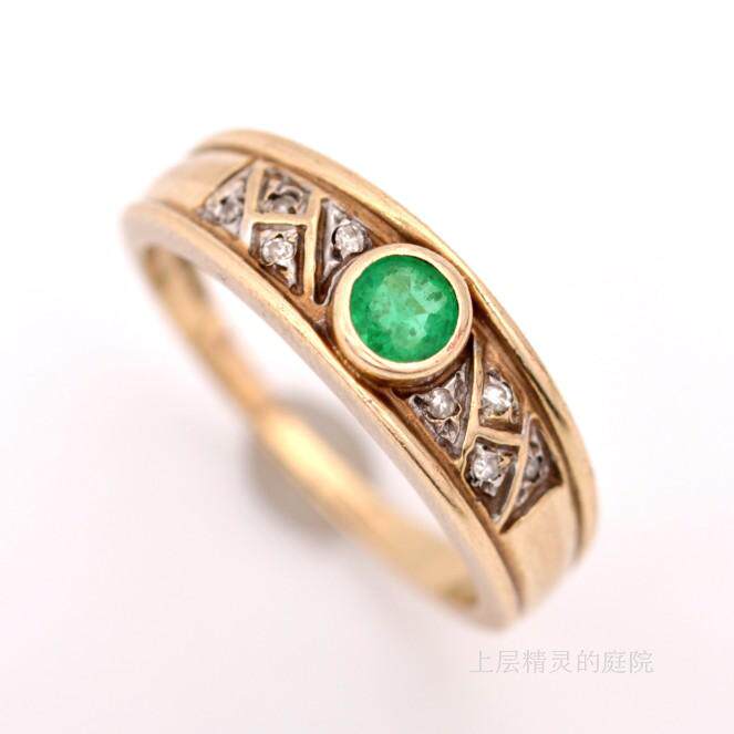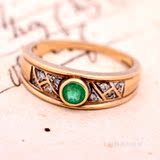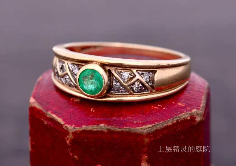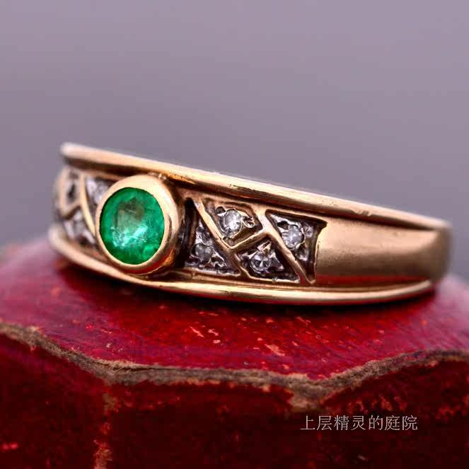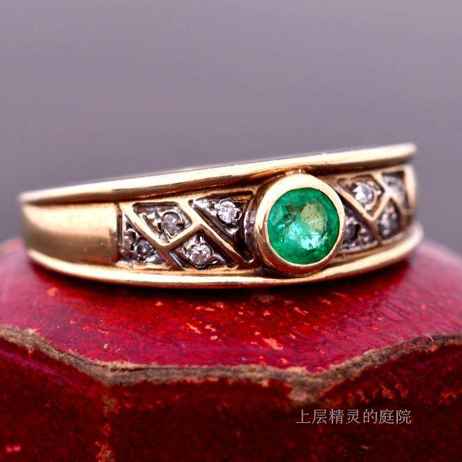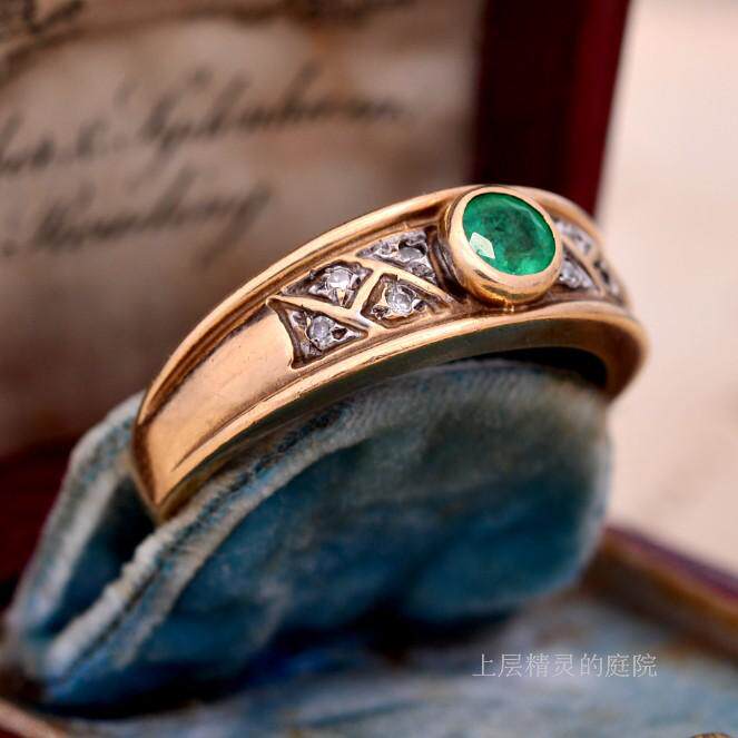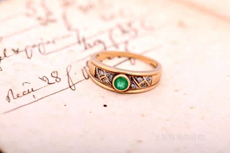 Проданный двор верхних эльфов ∮ Британские антикварные ювелирные украшения натуральная бабушка Green Diamond 9k Gold Retro Ring