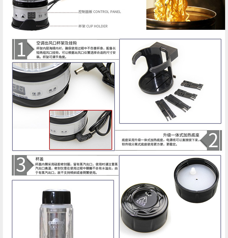 Автомобильная чашка с подогревом Автомобильный электрический чайник Автомобильная чашка с горячей водой Автомобильный электрический чайник большой емкости Автомобильная электрическая чашка с подогревом