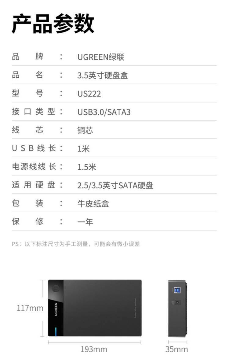 绿联 Мобильная коробка с жестким диском 3,5/2,5 дюйма универсального USB -внешнего механического сплошного состояния на рабочем компьюте