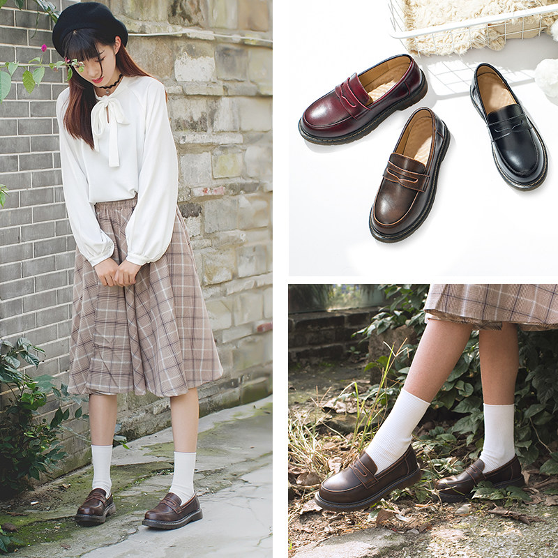伯爵猫 Японская студенческая юбка в складку для кожаной обуви, ретро лоферы для школьников, обувь, из натуральной кожи