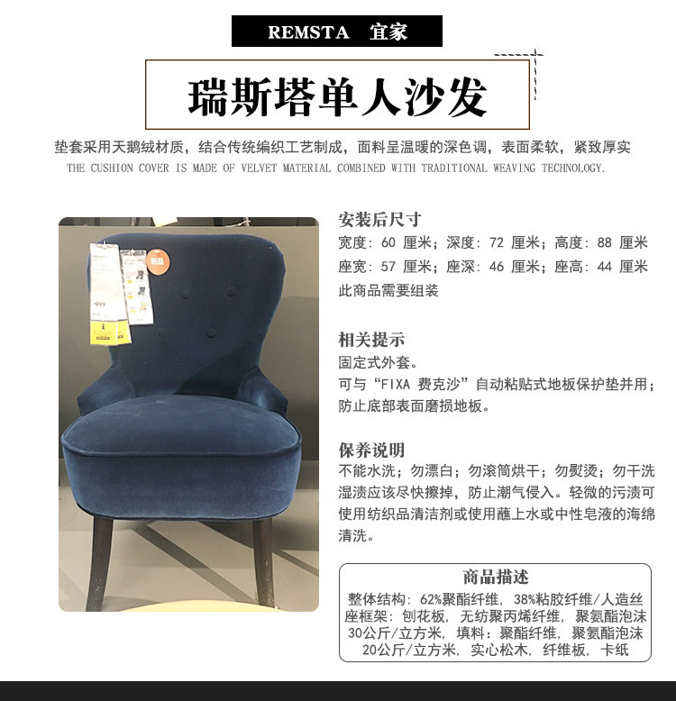 Ikea Onemic Покупка одиночного дивана/кресла для поручни Юпа Юпа темно -синяя зеленая ткань