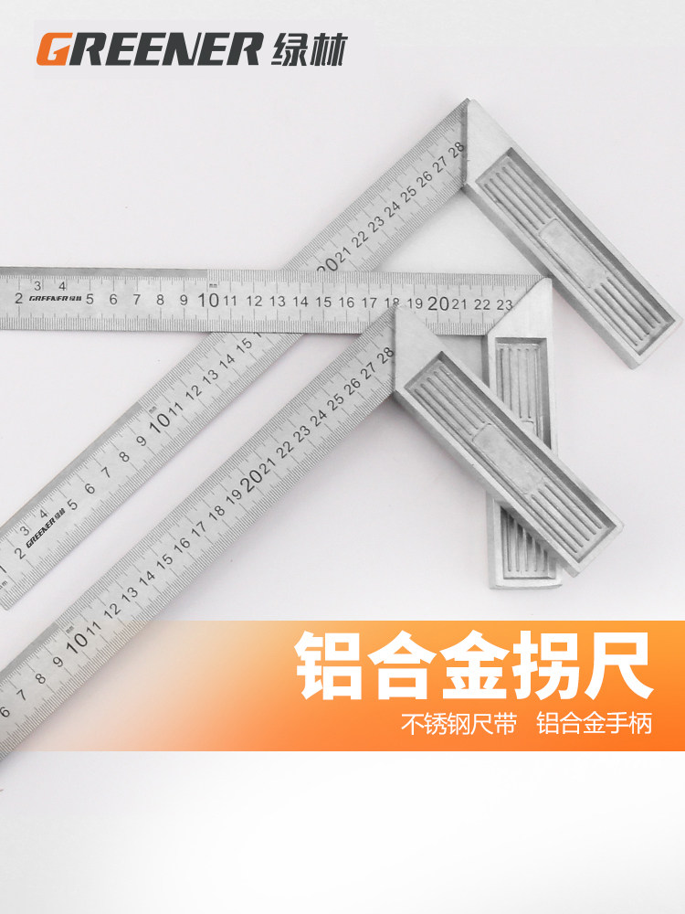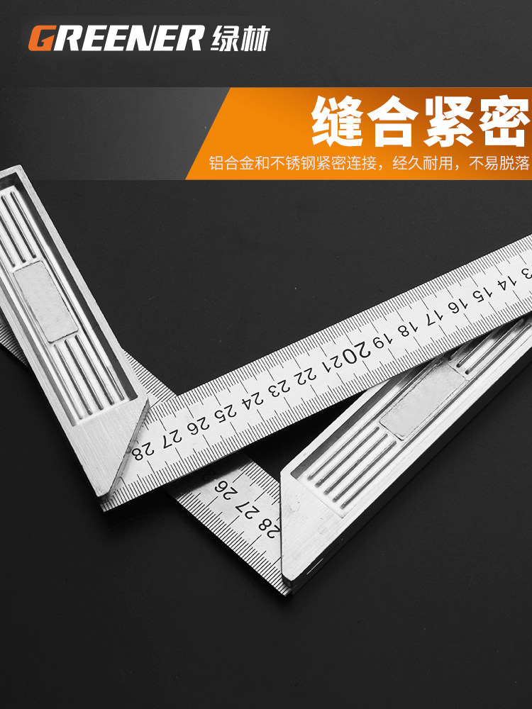 Угловая линейка зеленого леса, утолщенная линейка из нержавеющей стали 90 градусов, угловая линейка 300, столярные работы, L-образная линейка, поворотная линейка, широкое основание, прямоугольная линейка для досок