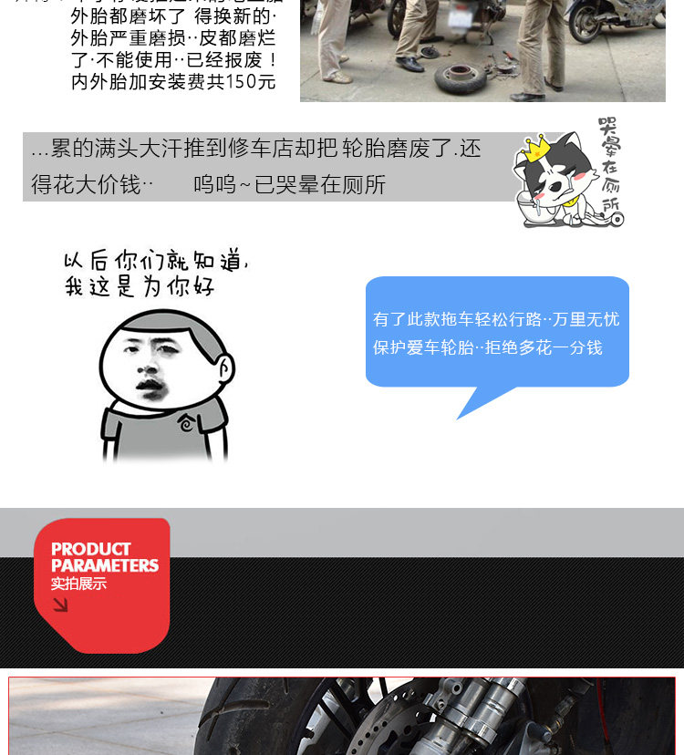 Электромобильные аксессуары взлома Tire Trailer Мотоциклы 瘪 电 电 电 电 Аварийный автомобиль помогает негабаритный трейлер