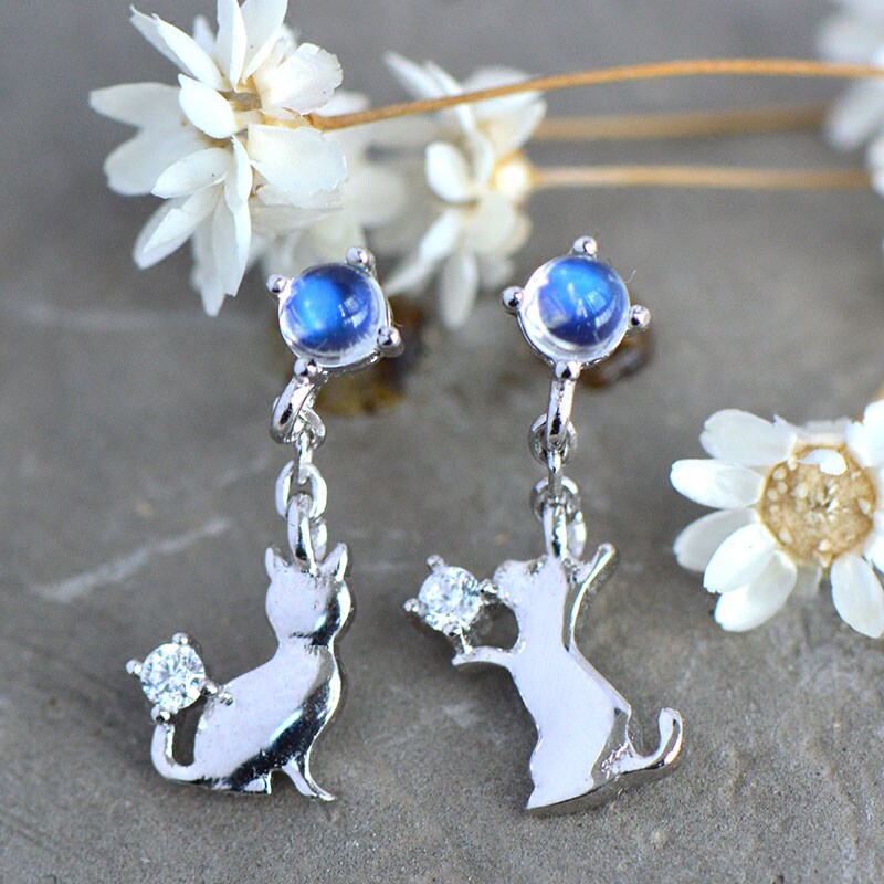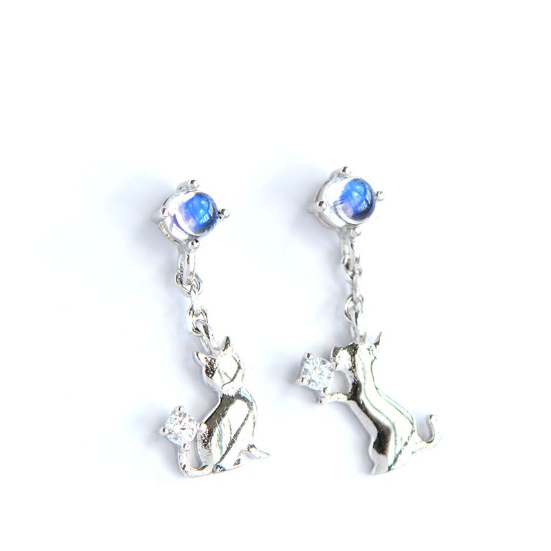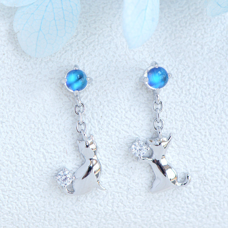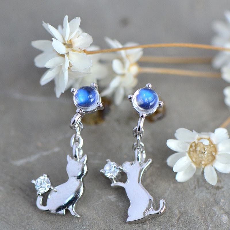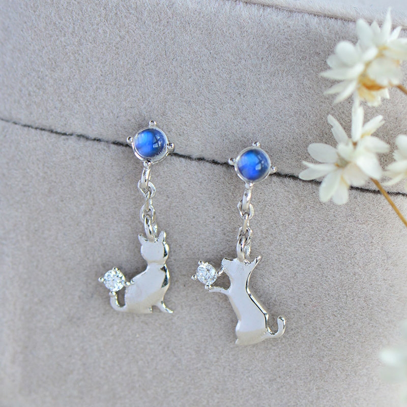 Асимметричные серьги из нефрита, лунный камень, серебро 925 пробы, японские и корейские, простой и элегантный дизайн