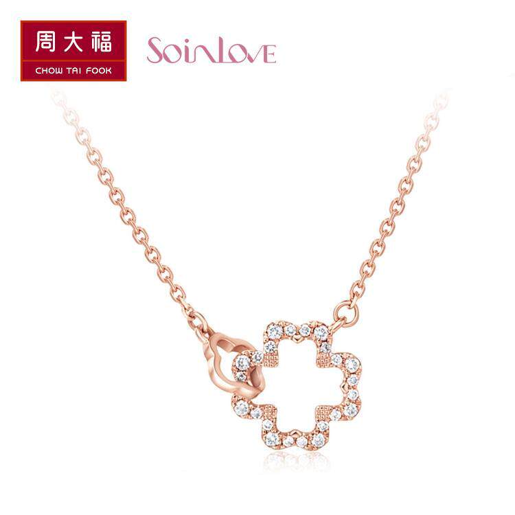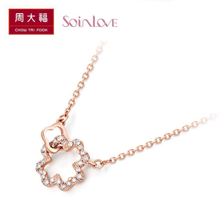 周大福 SOINLOVE Small Lucky Series, комплект ожерелья из 18-каратного золота с бриллиантами, цепочка, кулон VU489, подарок