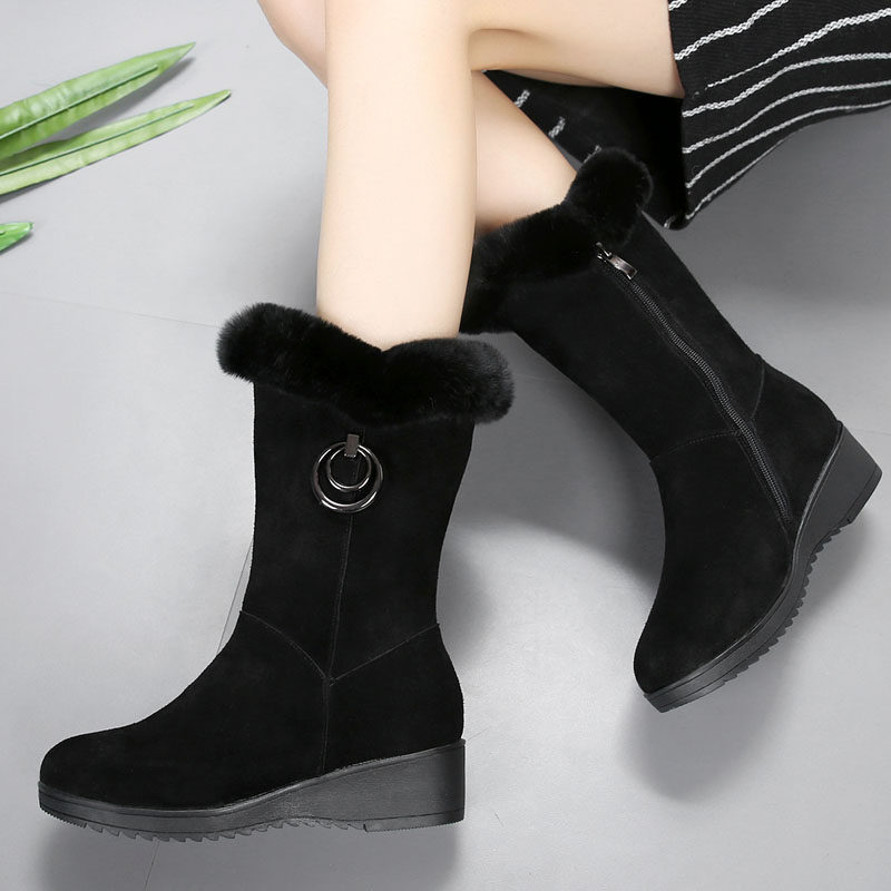 Martens, зимние ботинки, удерживающие тепло флисовые матовые сапоги, из натуральной кожи, средней длины