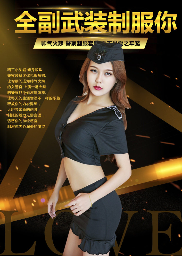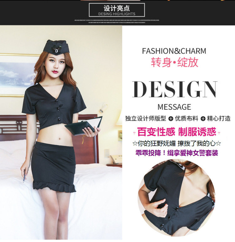 Нижнее белье, униформа, комплект, офицер полиции, косплей, с акцентом на бедрах, рыбий хвост