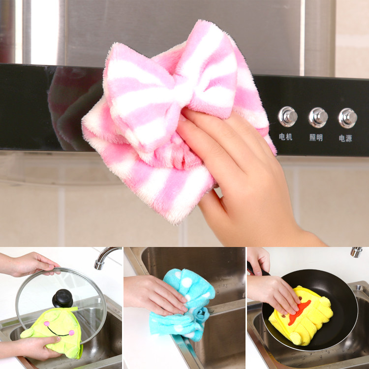 Мультфильм -шарф может повесить коралловый бархатный шарф шарф кухонный водопоглощающий полотенце, без масла, вымыть блюдо, протрите ткань чаши