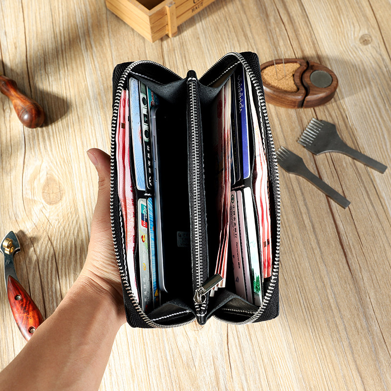 Длинный бумажник ручной работы, кожаная цепочка с молнией, маленькая сумка клатч, длина макси, DIY, из натуральной кожи