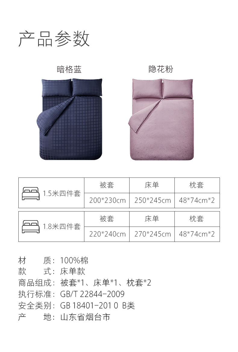 Хлопковый комплект, пододеяльник, простыня, наволочка, 4 предмета, 60 шт, простой и элегантный дизайн