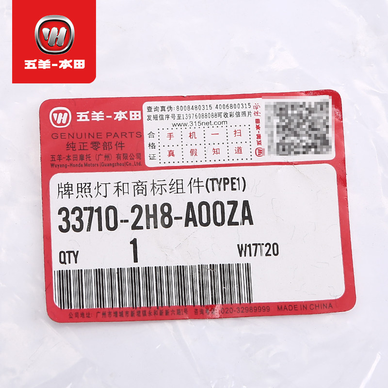 Wuyang Temple Mammoth 190 License Lamp Lamp CB190X задняя плата Грязной платы Сборка лицензионной лампы (оригинальная аутентичная)