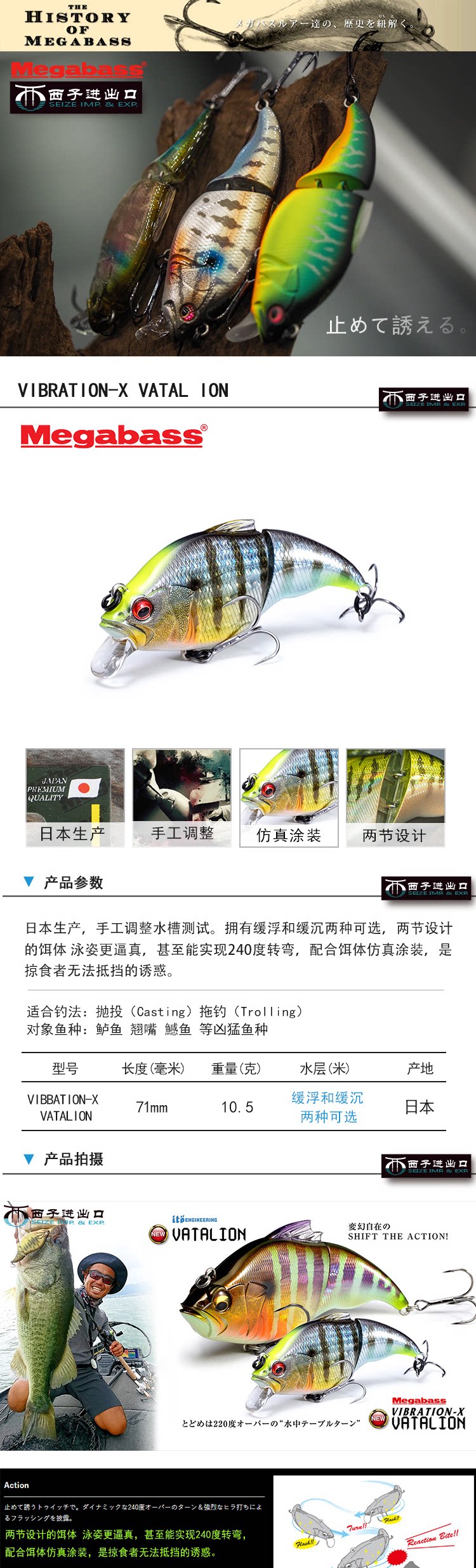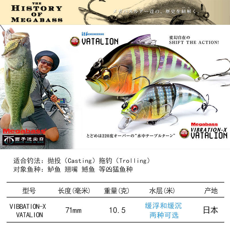 Megabass Оригинальный импортный ватальон с двойным рыбным перерывом.