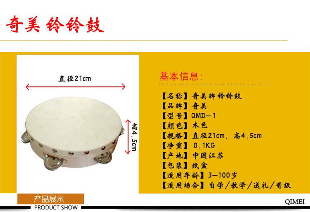 奇美 Бубен, интеллектуальная игрушка, ударные инструменты, 8 дюймов, обучение