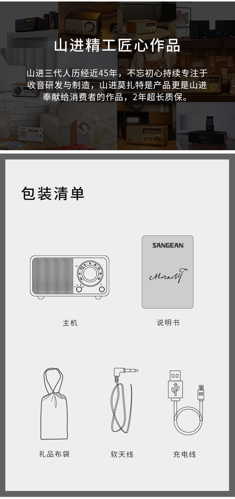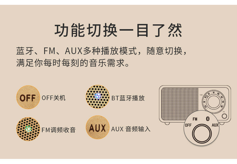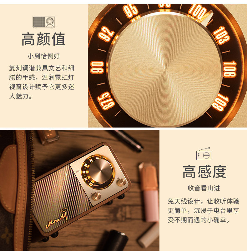 SANGEAN/山进 Mozart Retro беспроводной динамик Bluetooth Bass Portable Mini Mini Mobile Phone Bluetooth маленький звук милый открытый радио