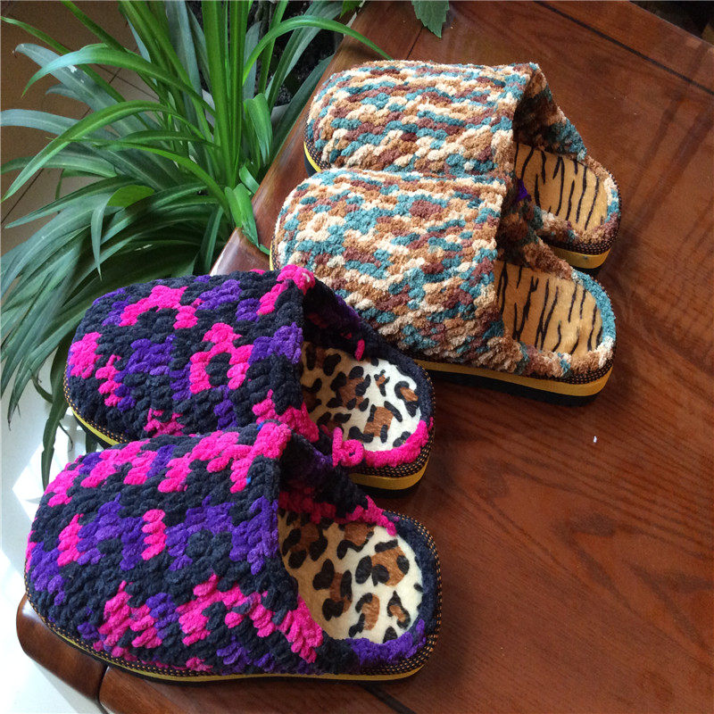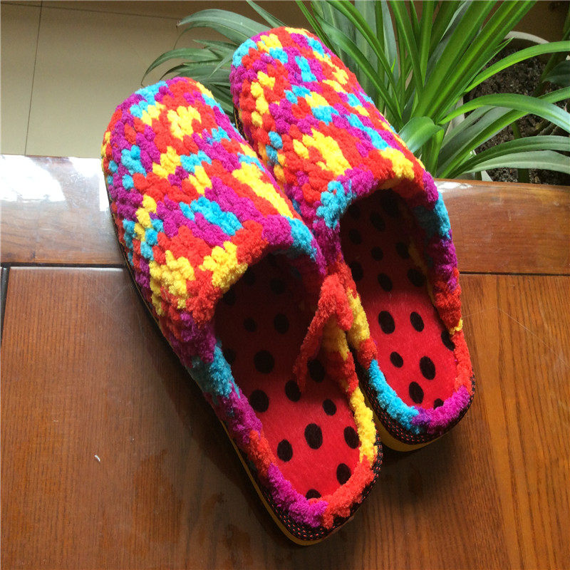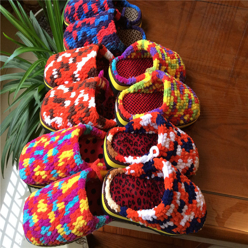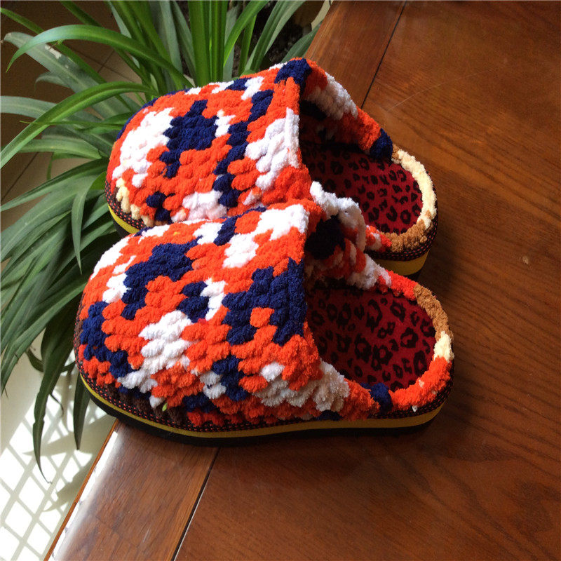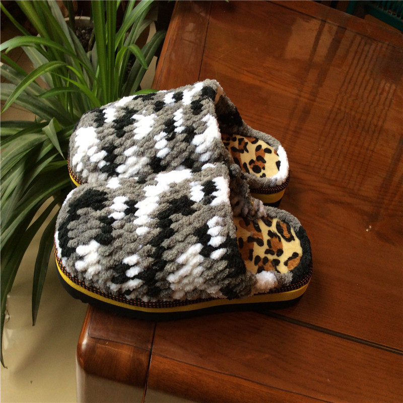 Нескользящие плетеные зимние тапочки на платформе