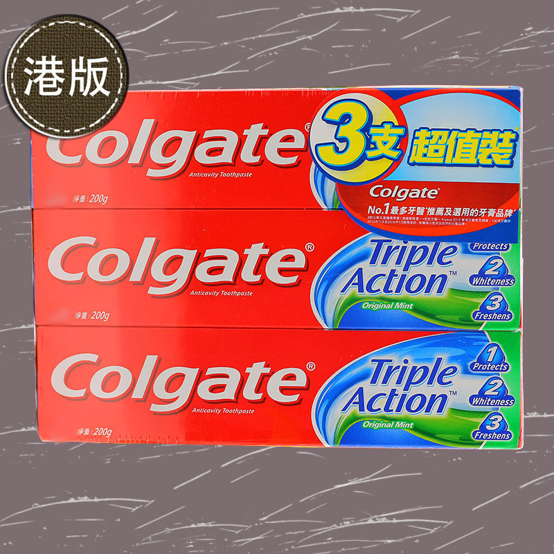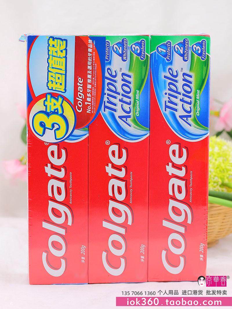 Colgate Зубная паста с тройным эффектом Colgate, 200 г, против моли, белая, свежая, гонконгская версия, импортная, бесплатная доставка, 3 упаковки