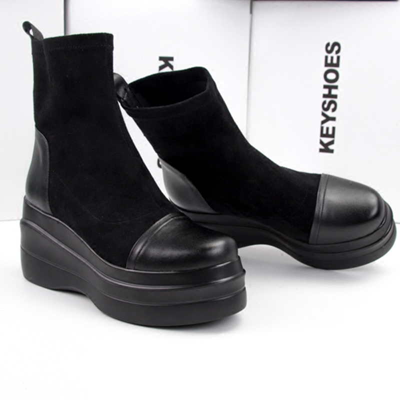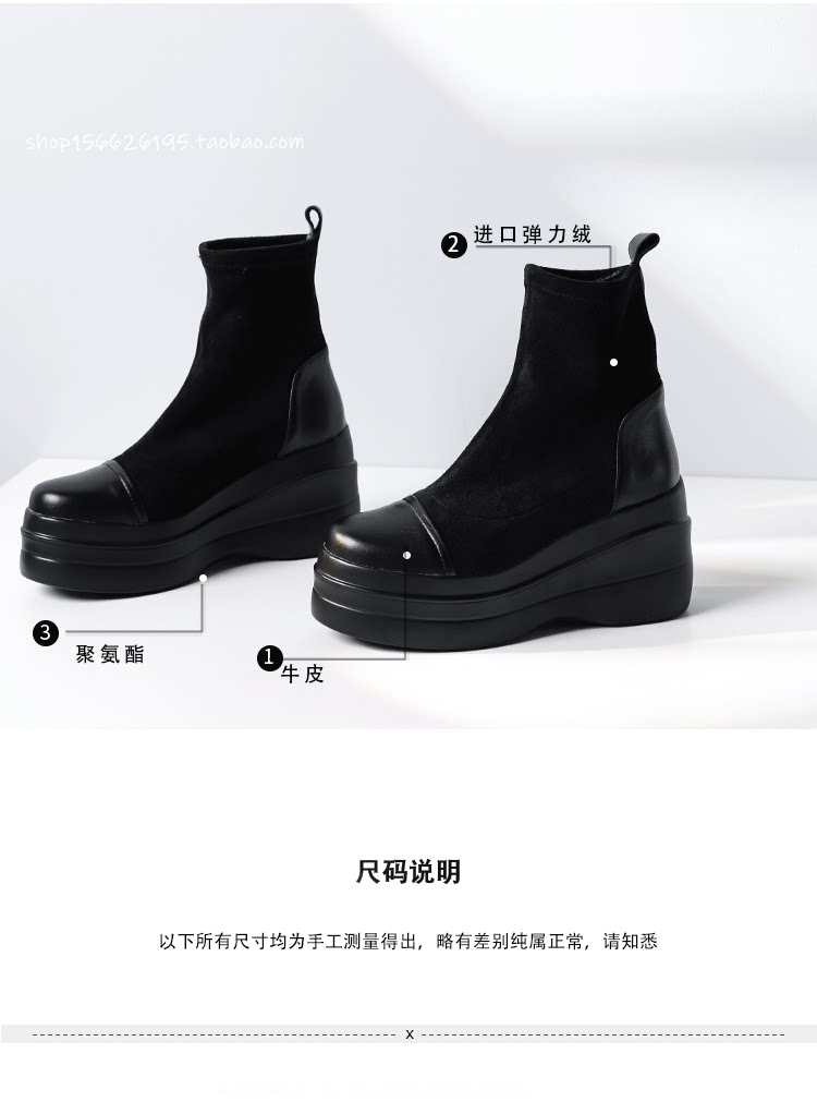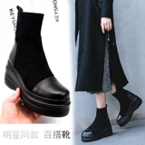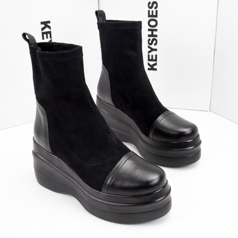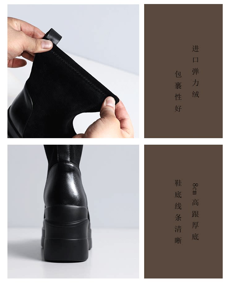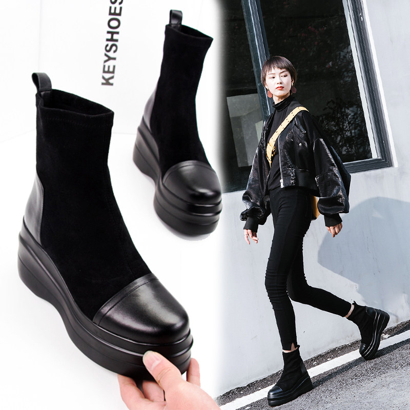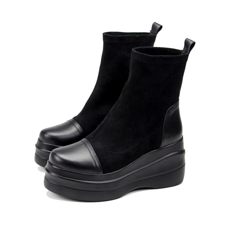 Весенние универсальные эластичные высокие короткие сапоги на платформе, по фигуре, из натуральной кожи
