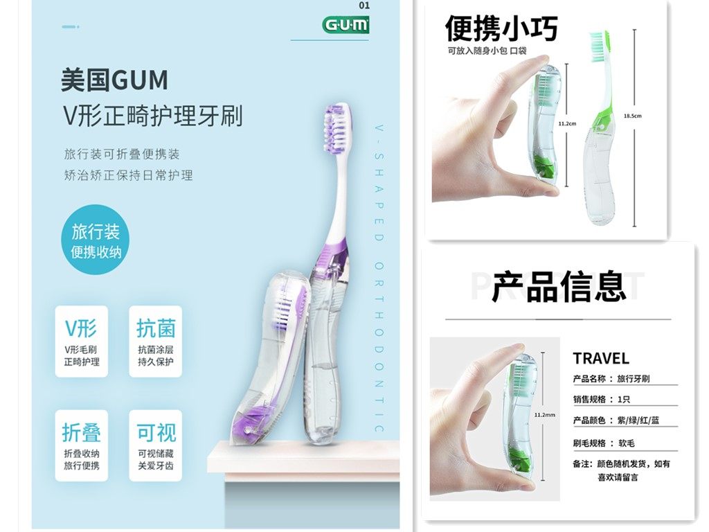 Gum QUANSHIKANG V -тип Православная зубная щетка#125 Маленькая головка коррекция зубной зубной зуб
