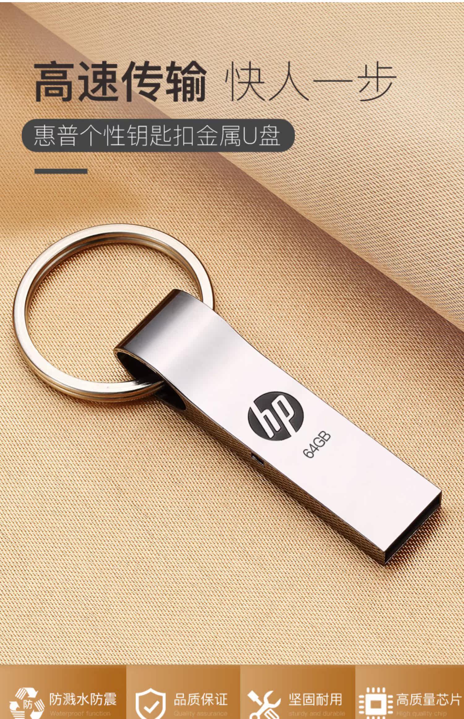 HP, USB-флеш-накопитель, золотой металлический креативный оригинальный брелок для школьников для офиса, 64G, бизнес-версия