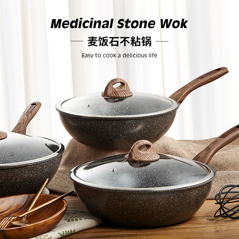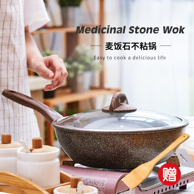 Mai Fan Stone Wok углубляйте не -стабильную кастрюлю, бездонную дым, большую мусора, большая жареная плита, индукционная плита газовая плита Universal 30см