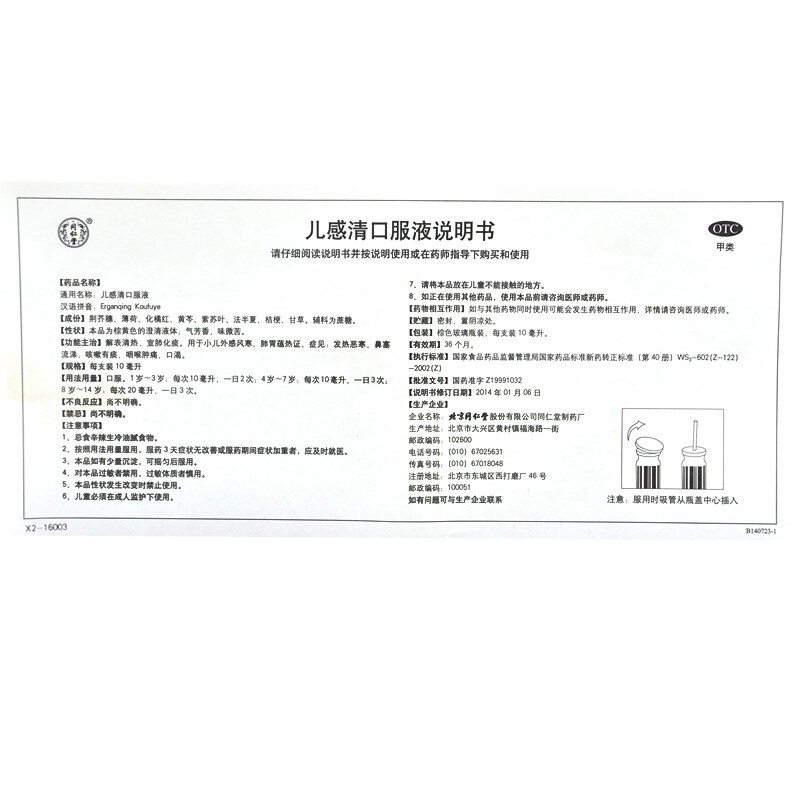 同仁堂 10 палочек очищающей жидкости Цяньцянь