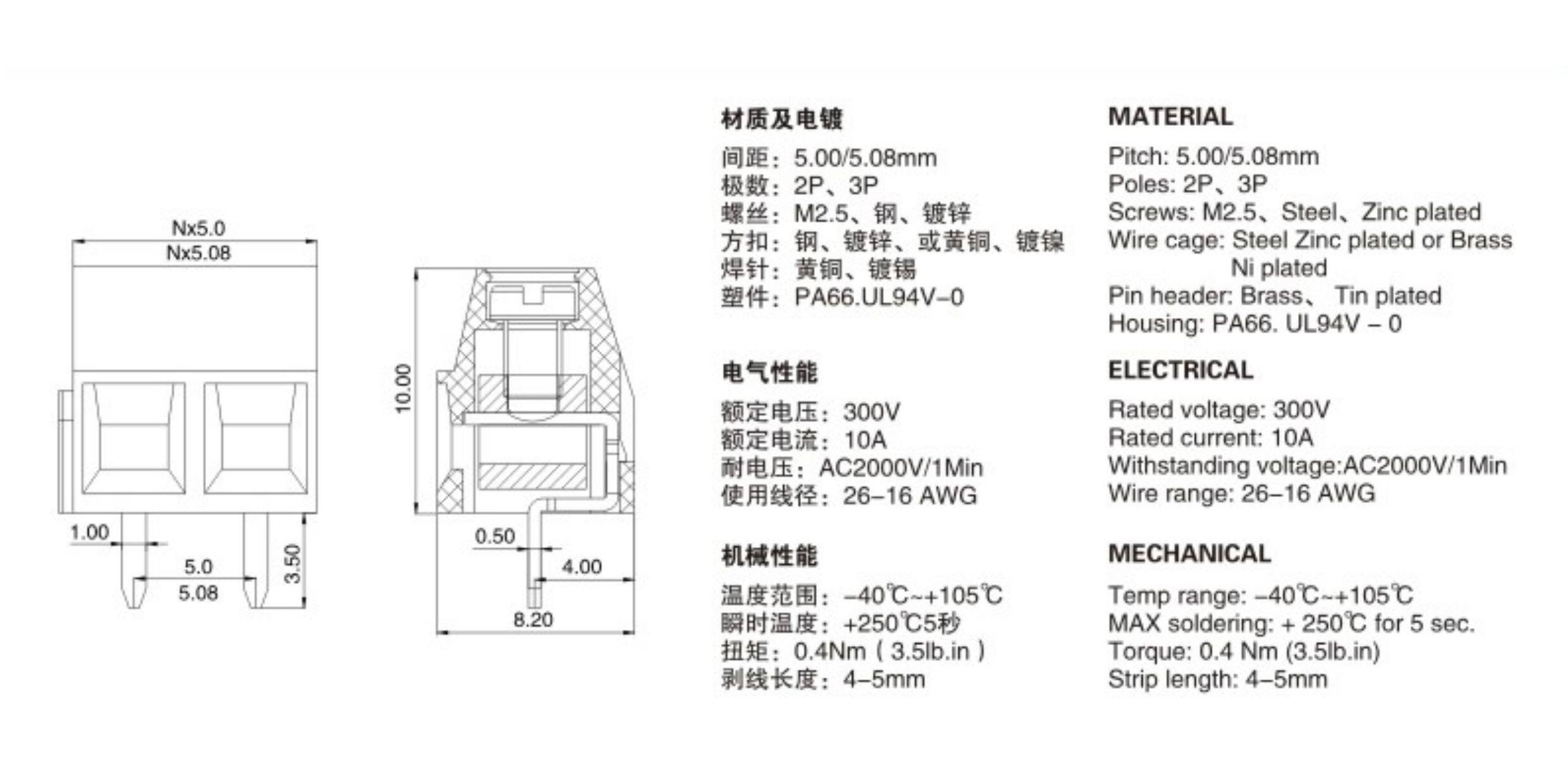 KF127-2P/3P Терминальная терминальная терминала 5,08 мм расстояние 5,0 мм может быть сшита.