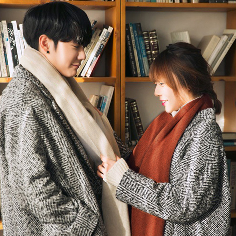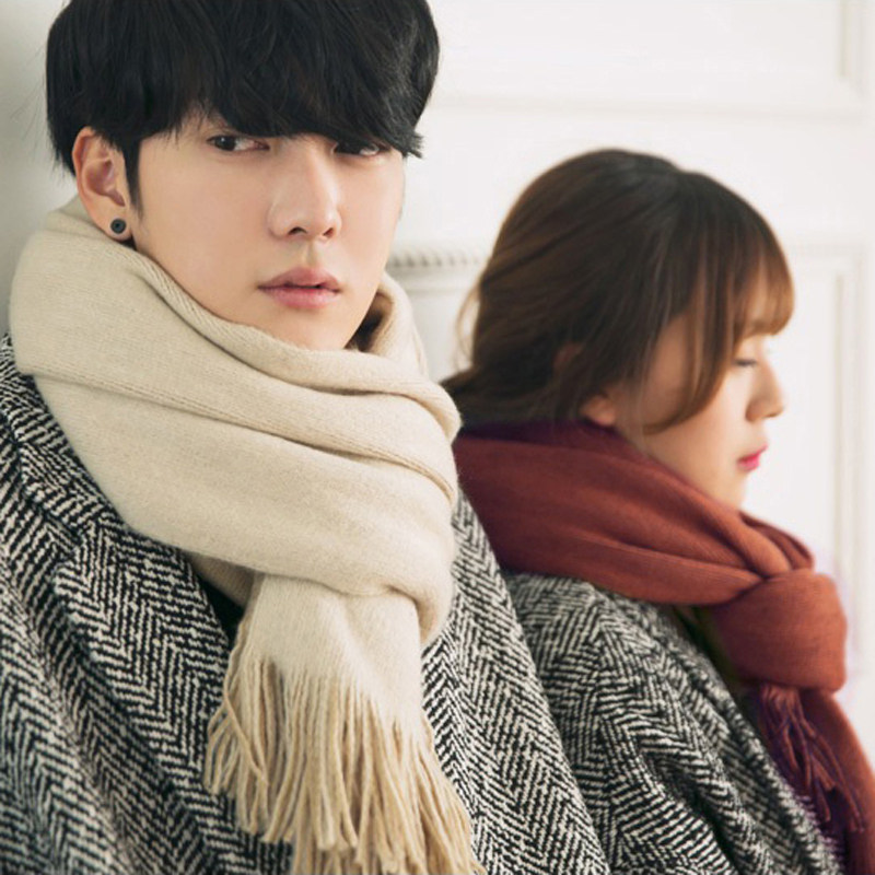 Демисезонный универсальный трикотажный длинный шарф, в корейском стиле, простой и элегантный дизайн, для влюбленных