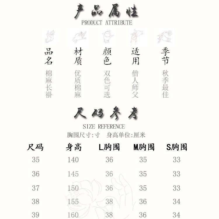 Платье монаха Juepai, хлопок, мамума, мужчина и женский буддийский мастер монахини, мастер монахиня, монах Монах Мона