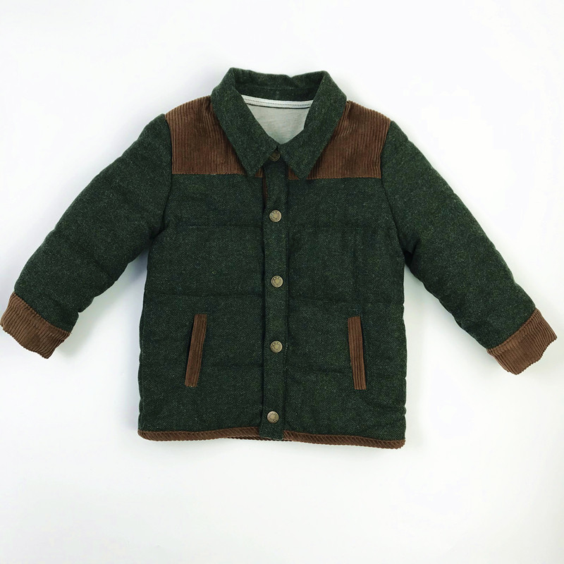 Детская демисезонная куртка для мальчиков, шерстяной мягкий стеганый пуховик, европейский стиль, квадратный вырез