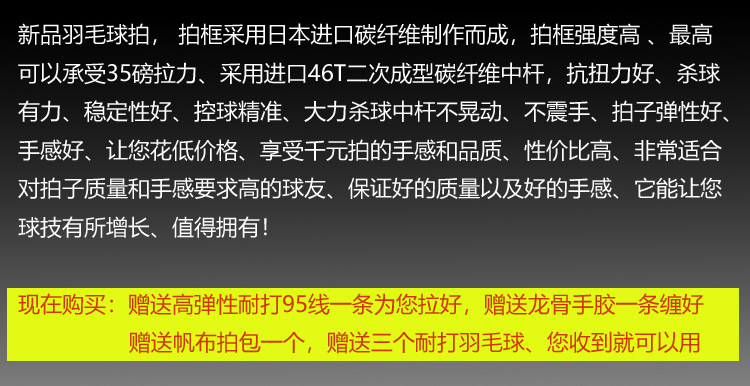 Высокий бадминтон Ракетка подлинный одноразовый полный углерод 35 -фунтов