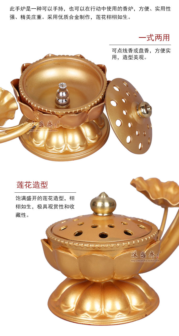 Золотая портативная ручка из сандалового дерева, курильница для благовоний